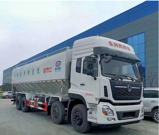 散装饲料运输车主要用于从饲料厂向畜牧场养禽场及饲料加工用户运输散装饲料成品或饲料生产原粮,同时它也可用来运输某些无腐蚀性粉粒状原料,如制药厂粉料和粮库周转。