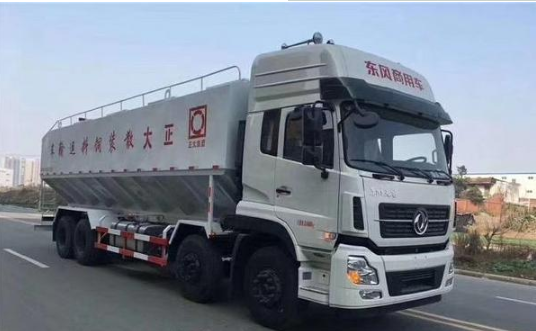东风天龙前四后八40方散装饲料车:采用东风天龙底盘,康机315马力国五发动机,法士特12JSD160TA变速箱,1850+4600+1350mm轴距,1100R20钢丝胎,电动门窗,中控锁,ABS,方向助力,空调,整车尺寸12000×2500×3995